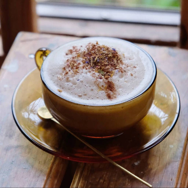 このティーフォルテ チャイ ティーのベースは、南インドのニルギリ地方の紅茶葉です。ニルギリは「青い丘」を意味します。ニルギリ地方 には多くの滝、花々、高くそびえる山々が見られ、8,652 フィートの標高にある最も高いドッダベッタ峰もニルギリ地域内に位置します。ニルギリヒルズは、インドにある生物保護区の一部であるニルギリ保護区にあります。